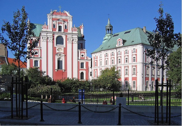 Barokowa perła architektury sakralnej, uważana za jeden z najpiękniejszych kościołów w Polsce. Świątynia wyróżnia się monumentalnym wnętrzem, bogatymi ołtarzami i iluzjonistycznymi freskami. Jej historia sięga XVII wieku, a wnętrze zachwyca harmonią barokowych zdobień i wspaniałą akustyką. Jest częścią większego kompleksu dawnego Kolegium Jezuickiego, w którym obecnie mieści się m.in. poznański miejski magistrat.